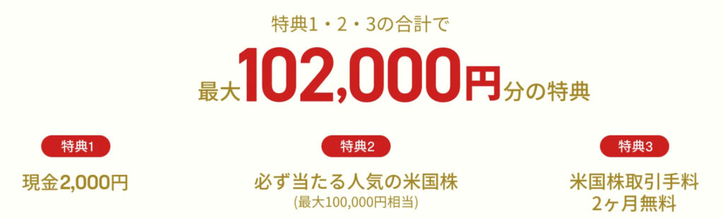 2000円の現金と、10万円相当の米国株が貰えます。
