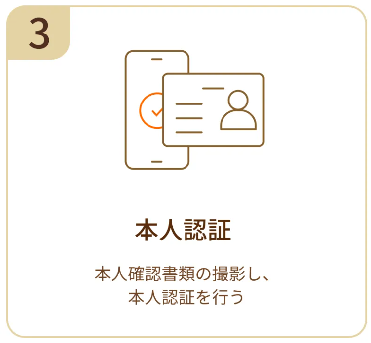 マイナンバーカードなど本人確認書類をスマホで撮影し本人確認を行います。